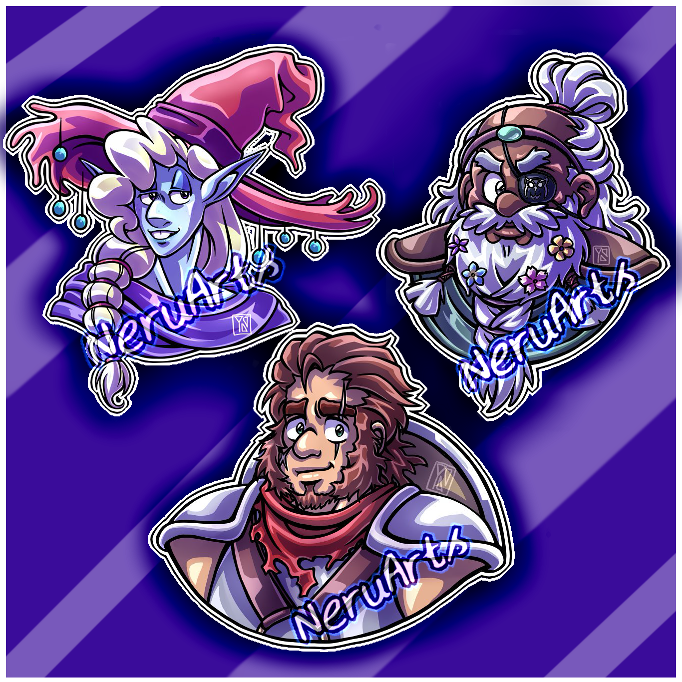 8x8cm sticker of everyone's favourite awful boys, Taako, Magnus and Merle.