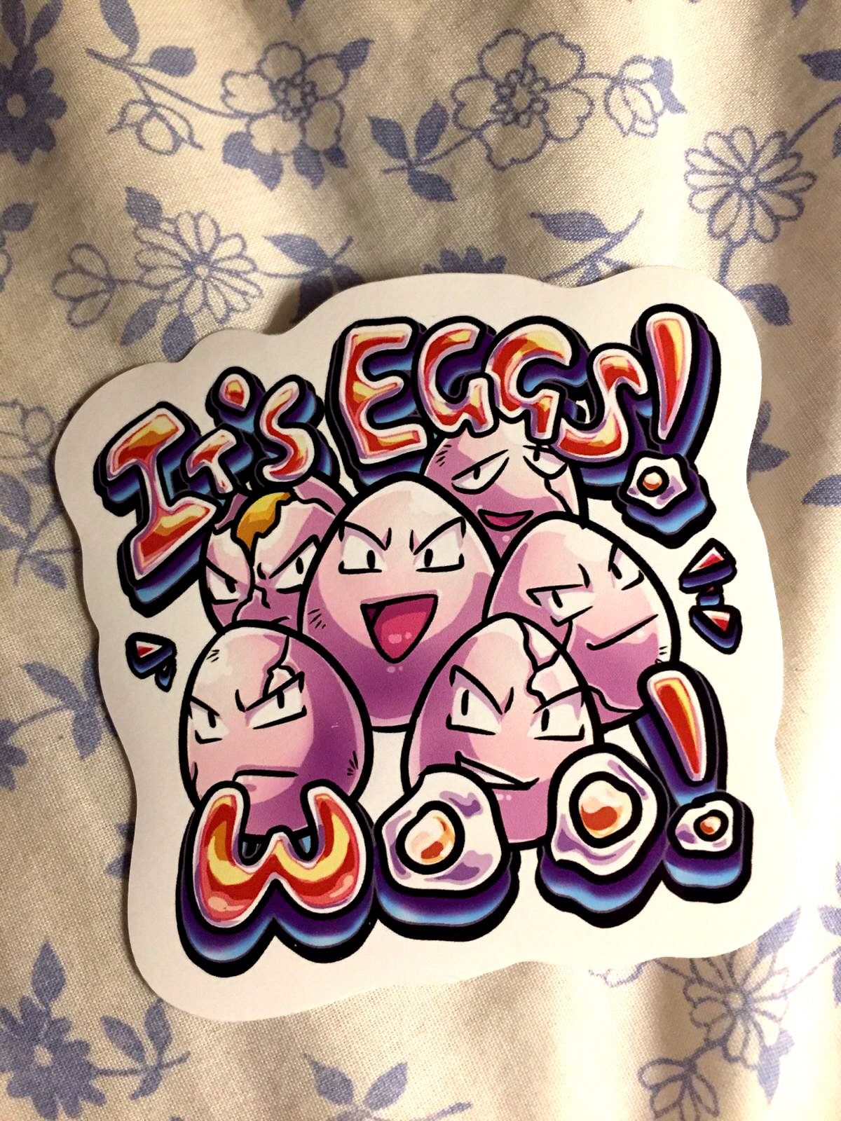 10x10cm of Exeggcute with text inspired by Something Rotten, the musical.