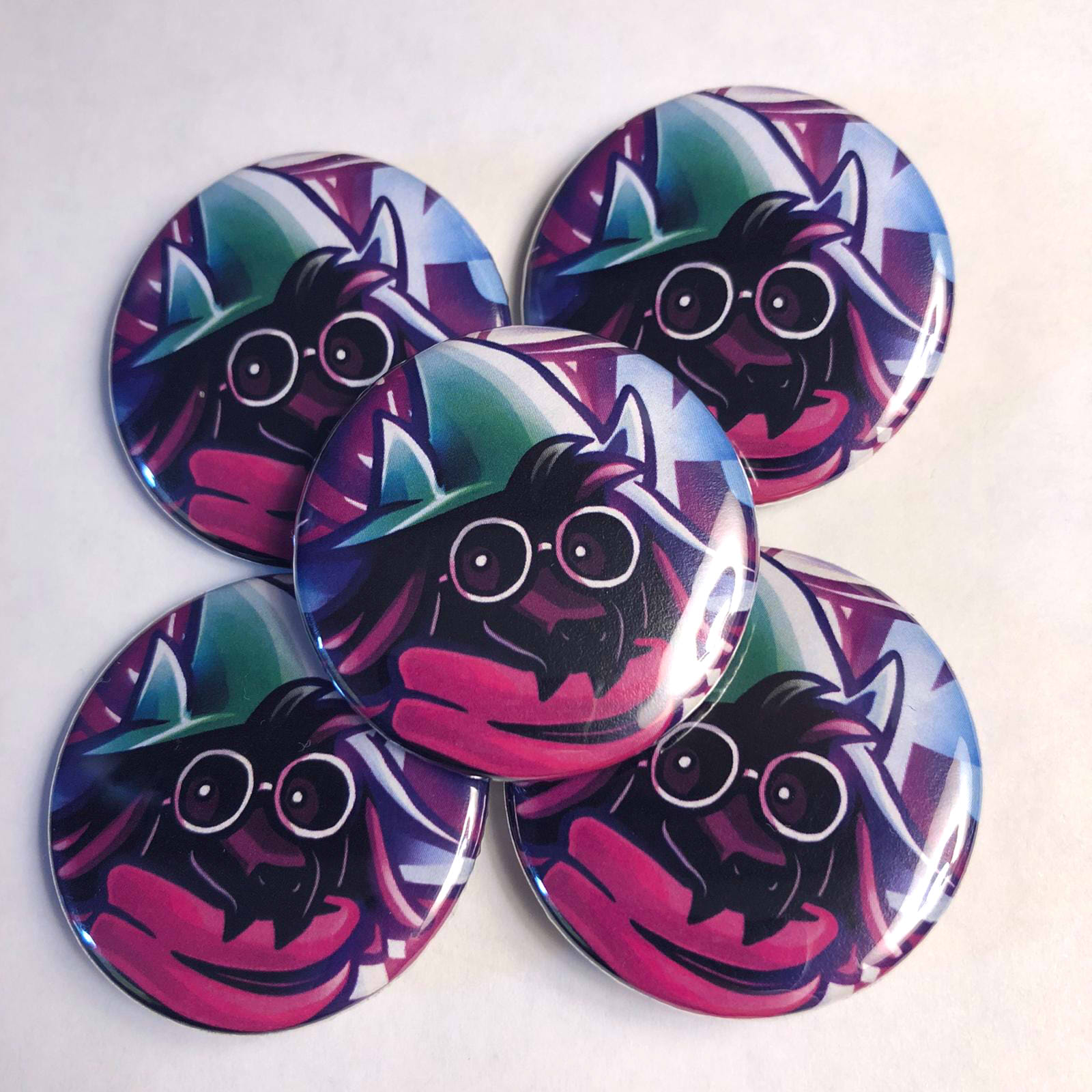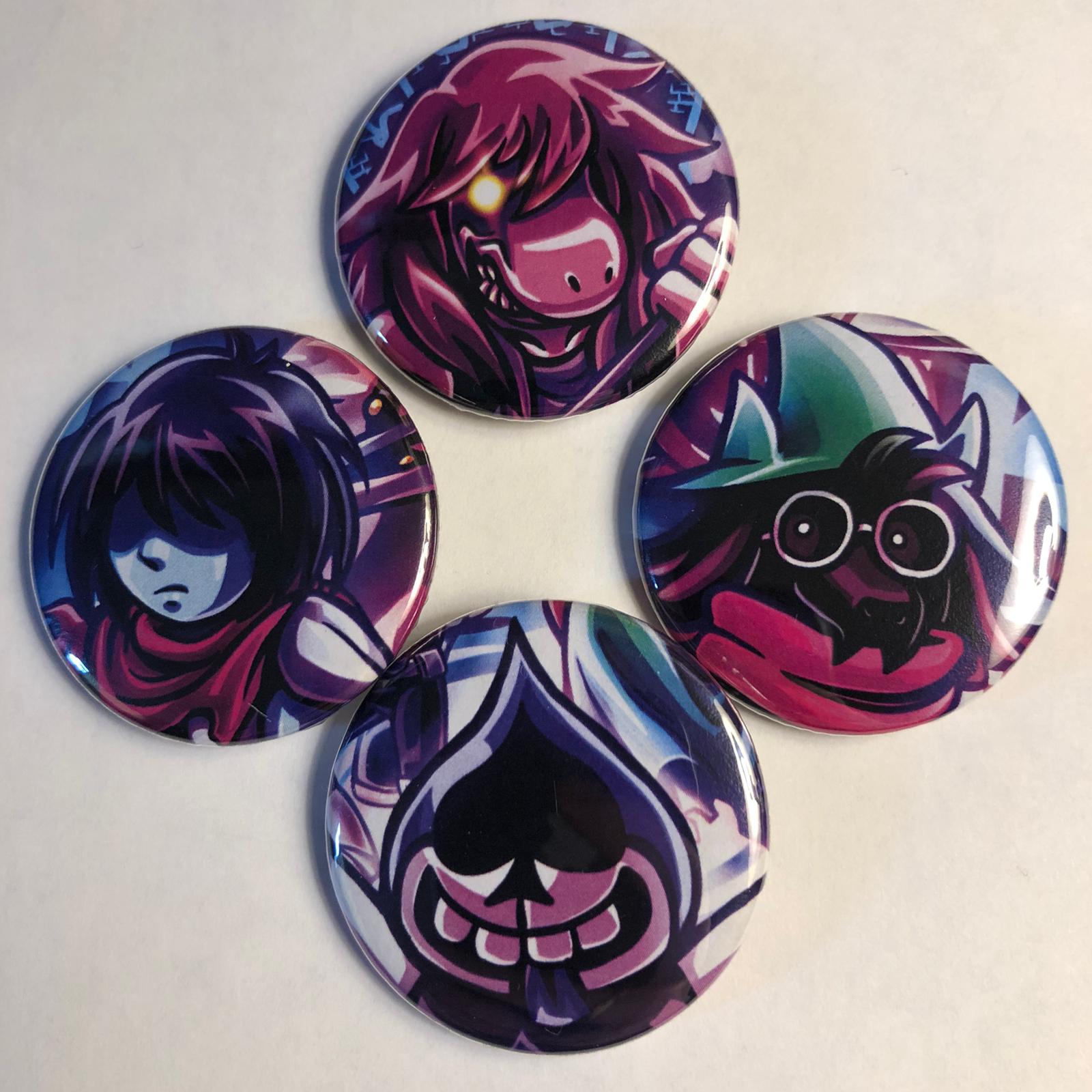 38mm badges of Kris, Susie, Ralsei or Lancer.