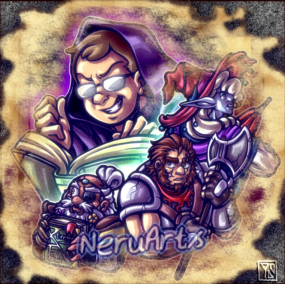 5x5'' matte print of the gang from the Balance Arc of The Adventure Zone podcast.